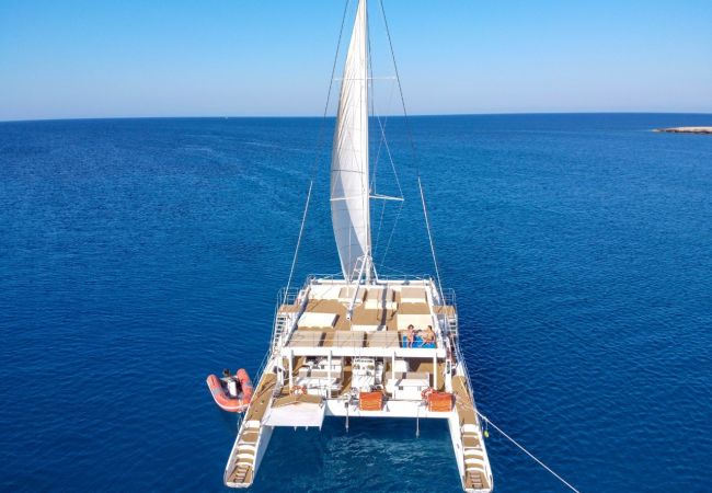 Leave the beach behind and head for the open waters of the Mediterranean, onboard our fast, safe and comfortable luxury Catamarans.