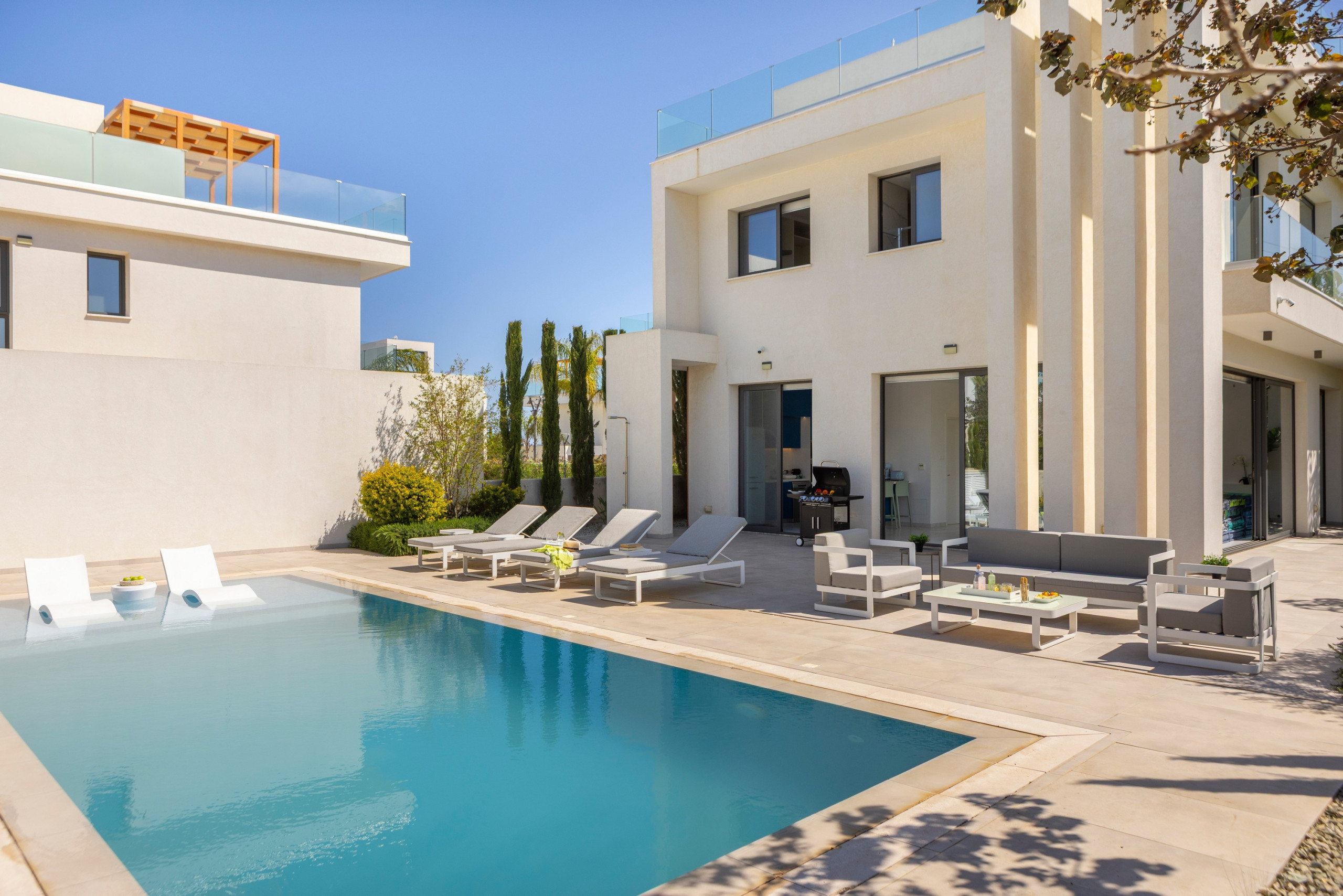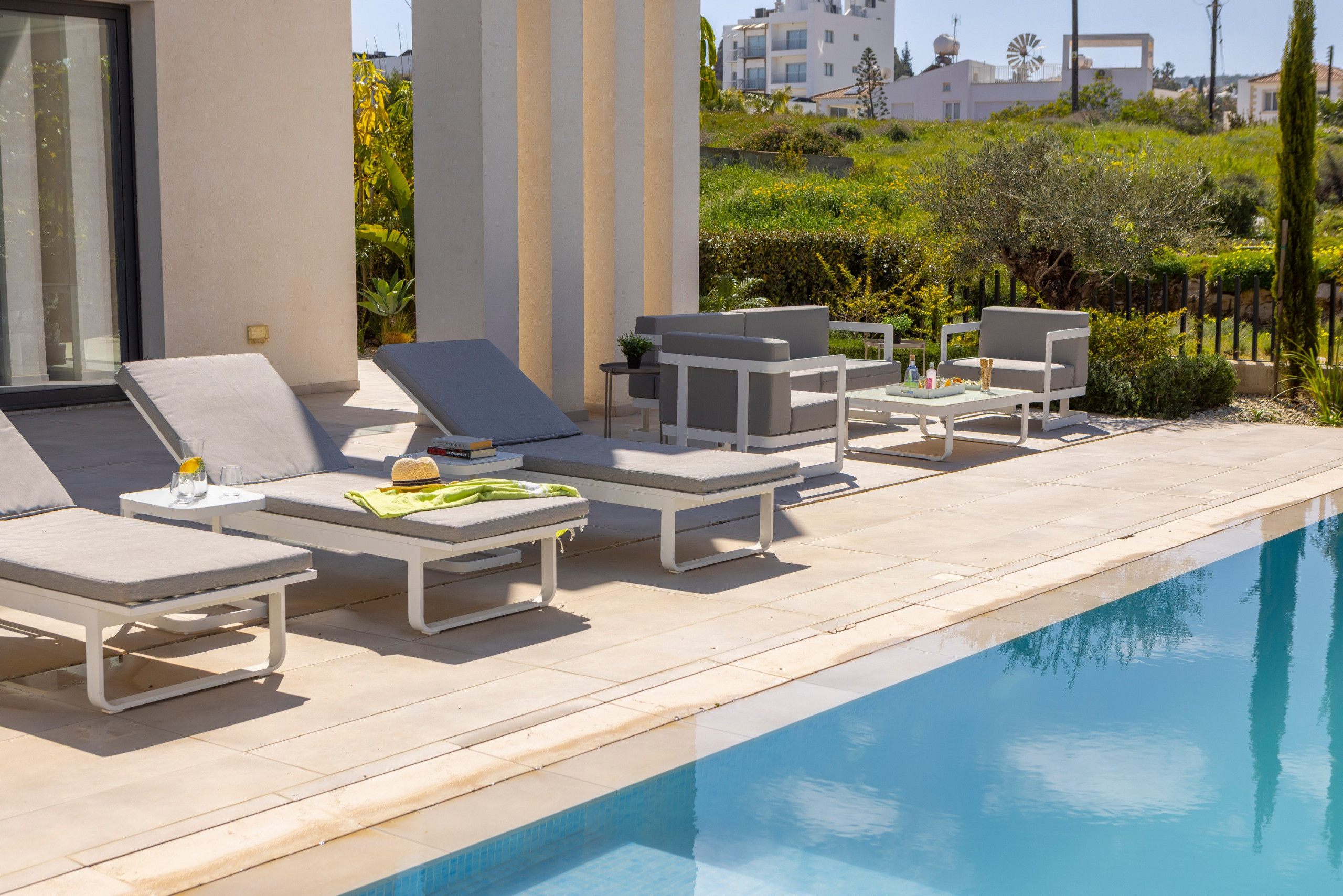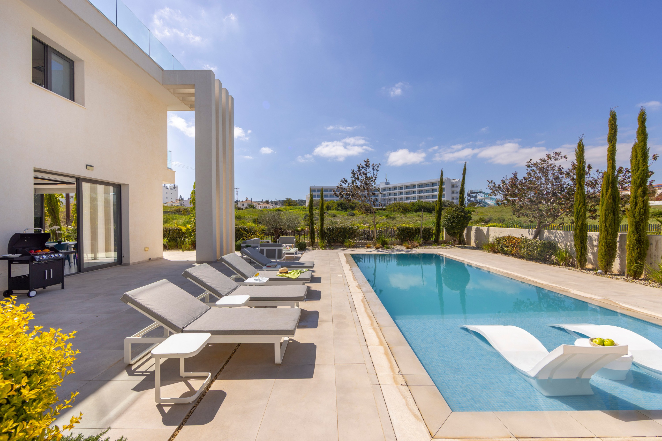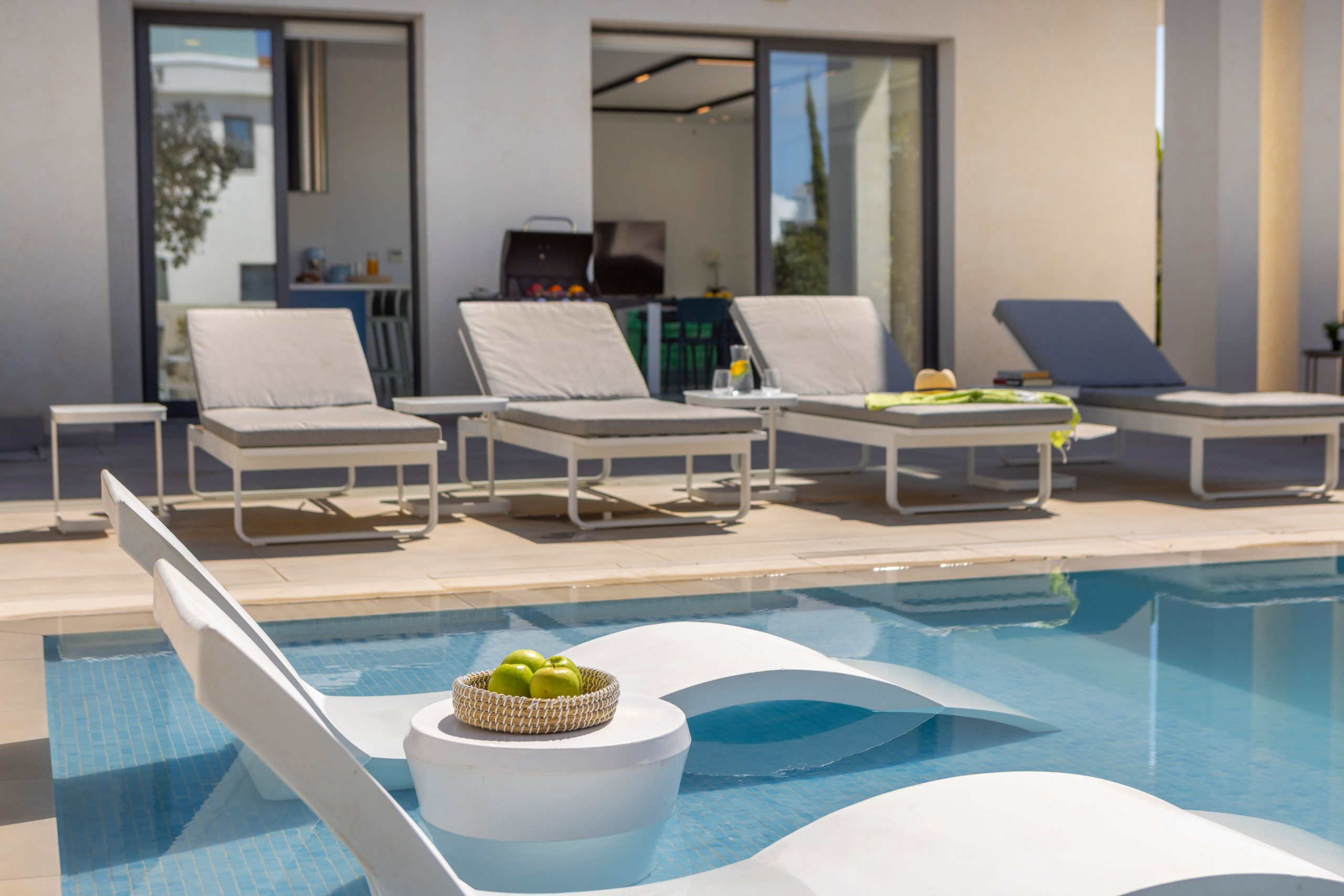 Protaras By the Bay villa 19 Villa offers a large private pool and patio area, fully equipped with a comfortable sofa set, sunbeds, excellent BBQ set and elegant lighting for the night.