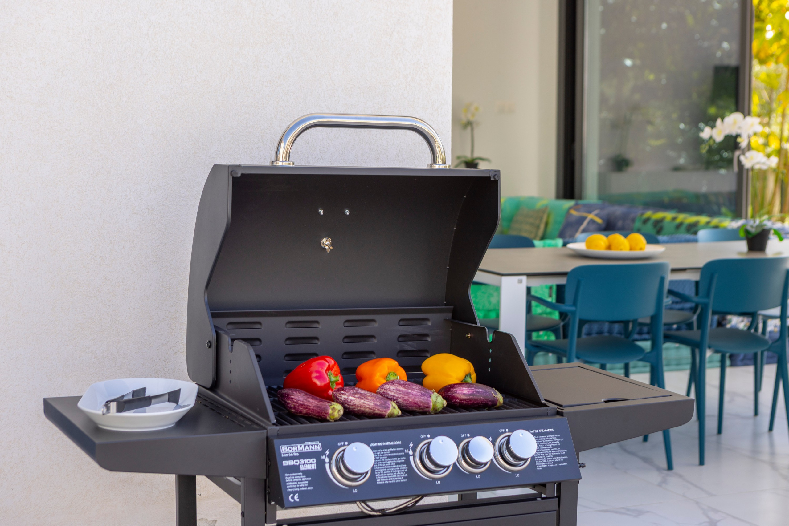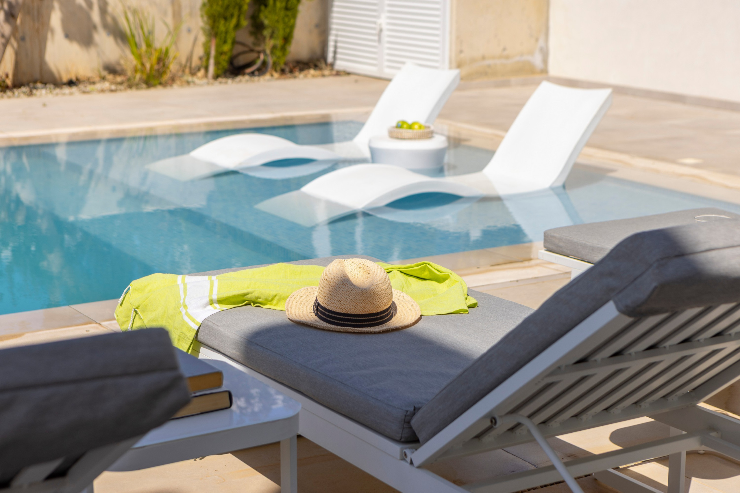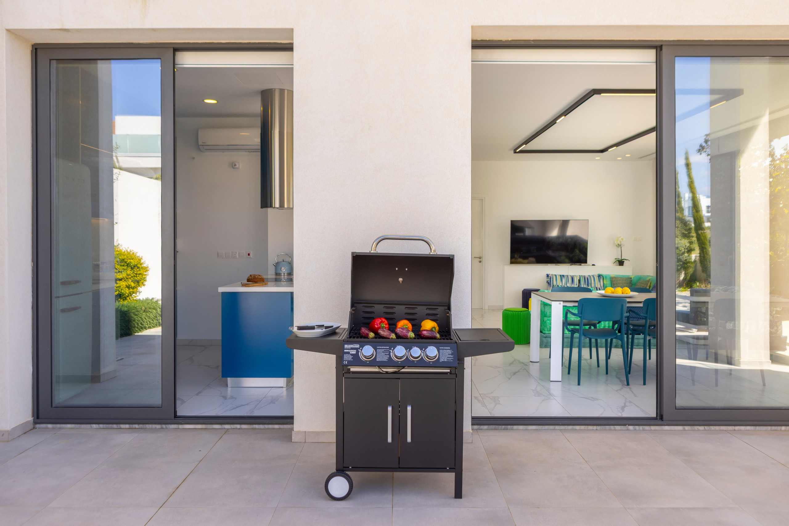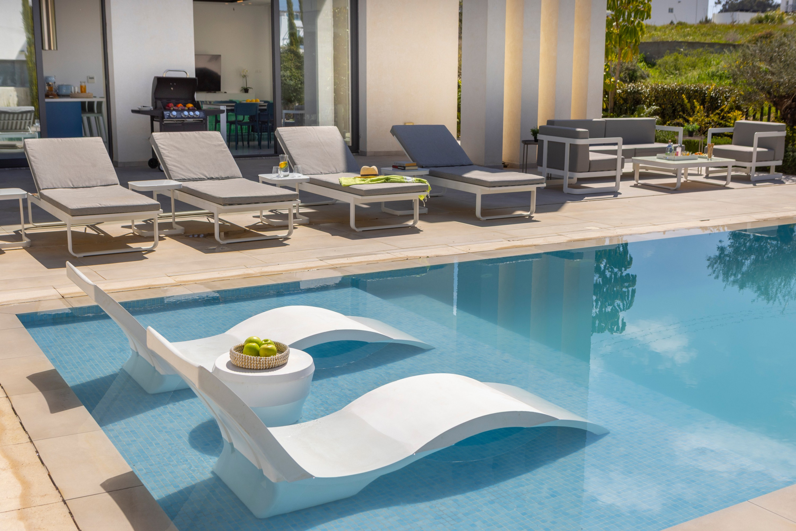 Protaras By the Bay villa 19 Villa offers a large private pool and patio area, fully equipped with a comfortable sofa set, sunbeds, excellent BBQ set and elegant lighting for the night.
