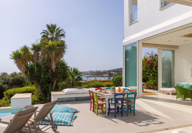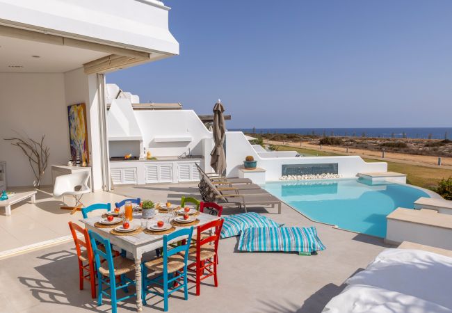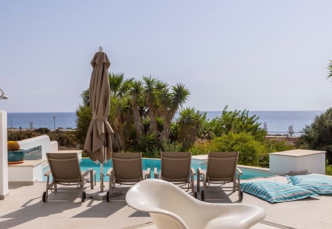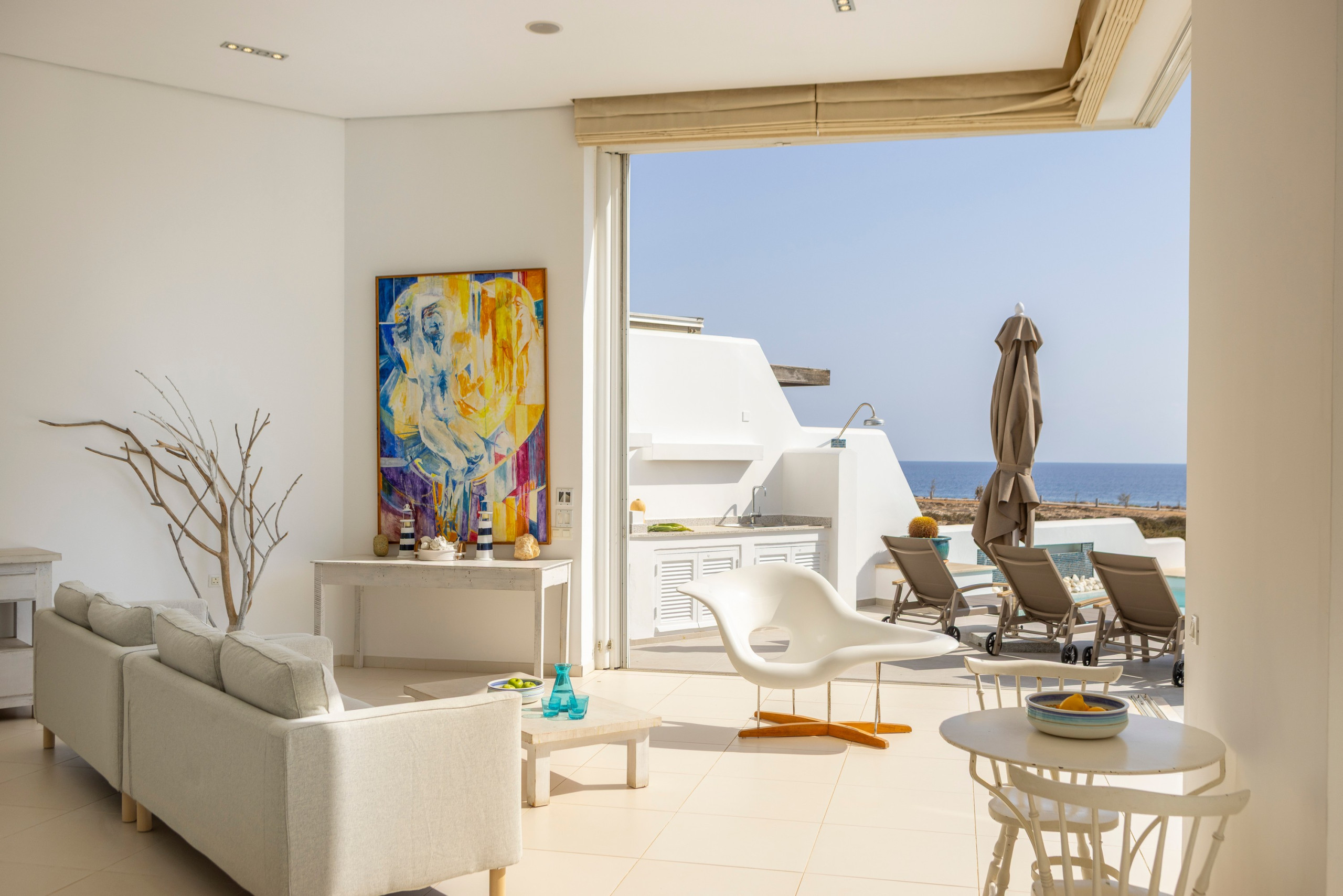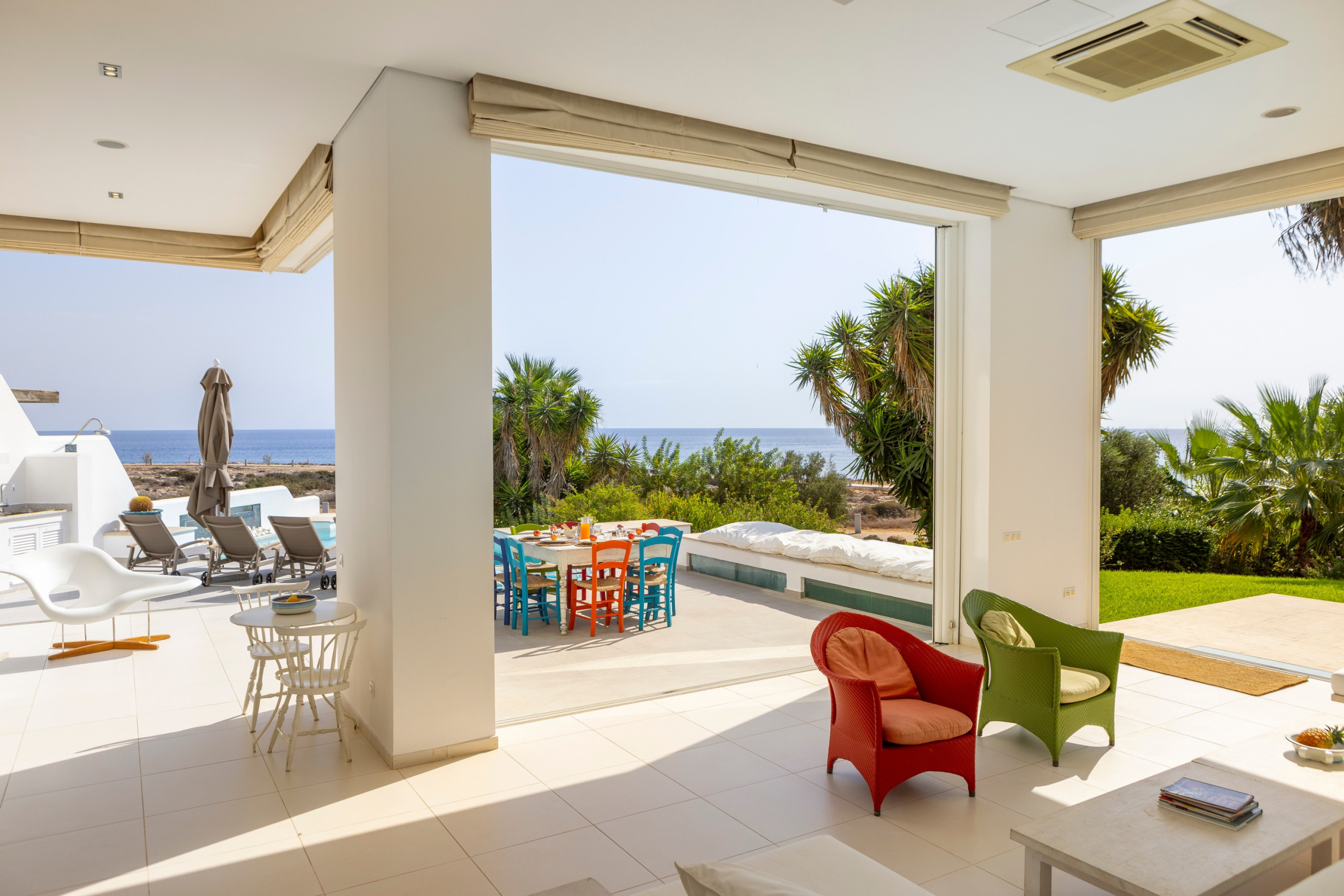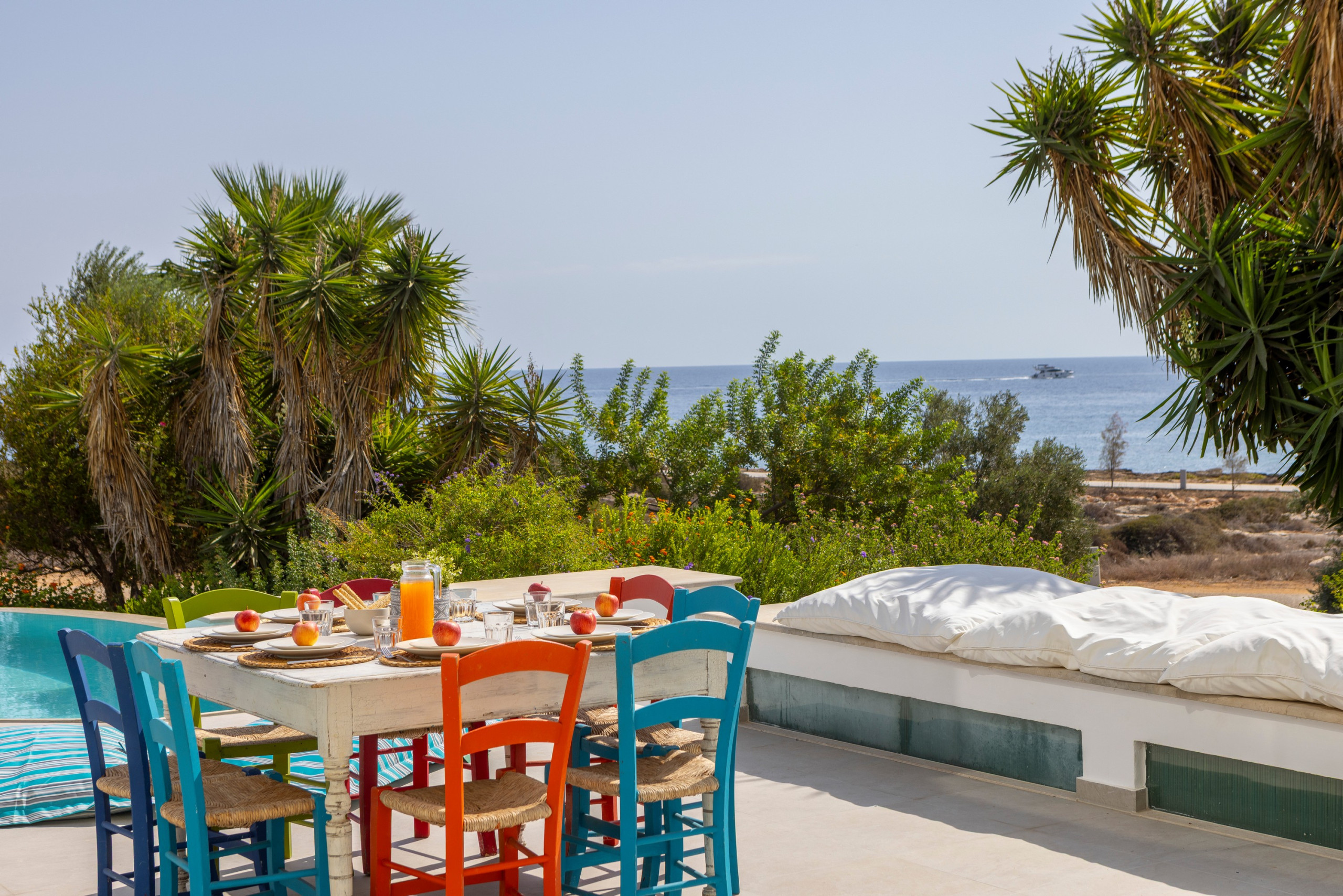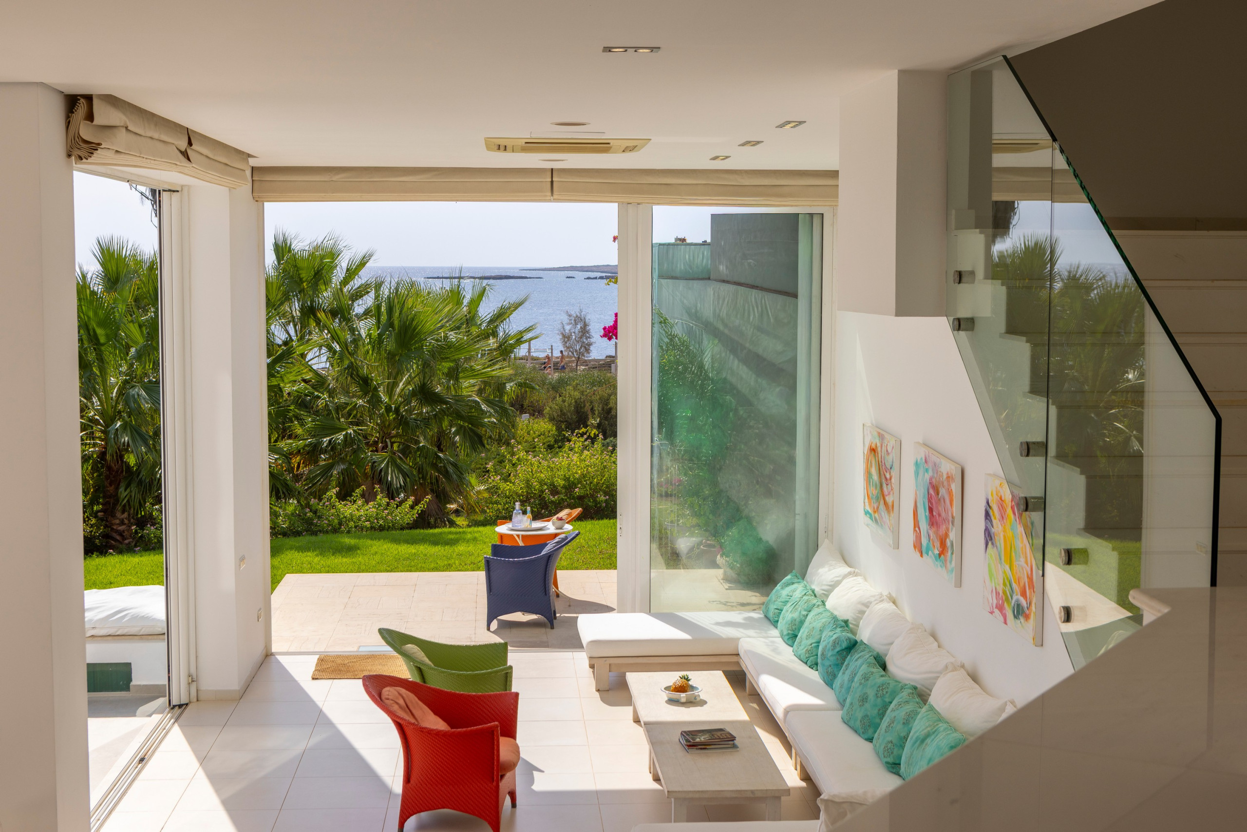 Protaras Seafront Villa AleMar is a stunning family-friendly property located in the best spot of the picturesque coastal town of Protaras, offering stunning sea views and quick access to the beach, an ideal setting for memorable holidays. This spacious 300 square metre villa comfortably accommodates up to 10 guests, making it perfect for families, friend groups, and special gatherings. The house was individually designed by one of Cyprus’s top architects and offers unique features, comfort and design.