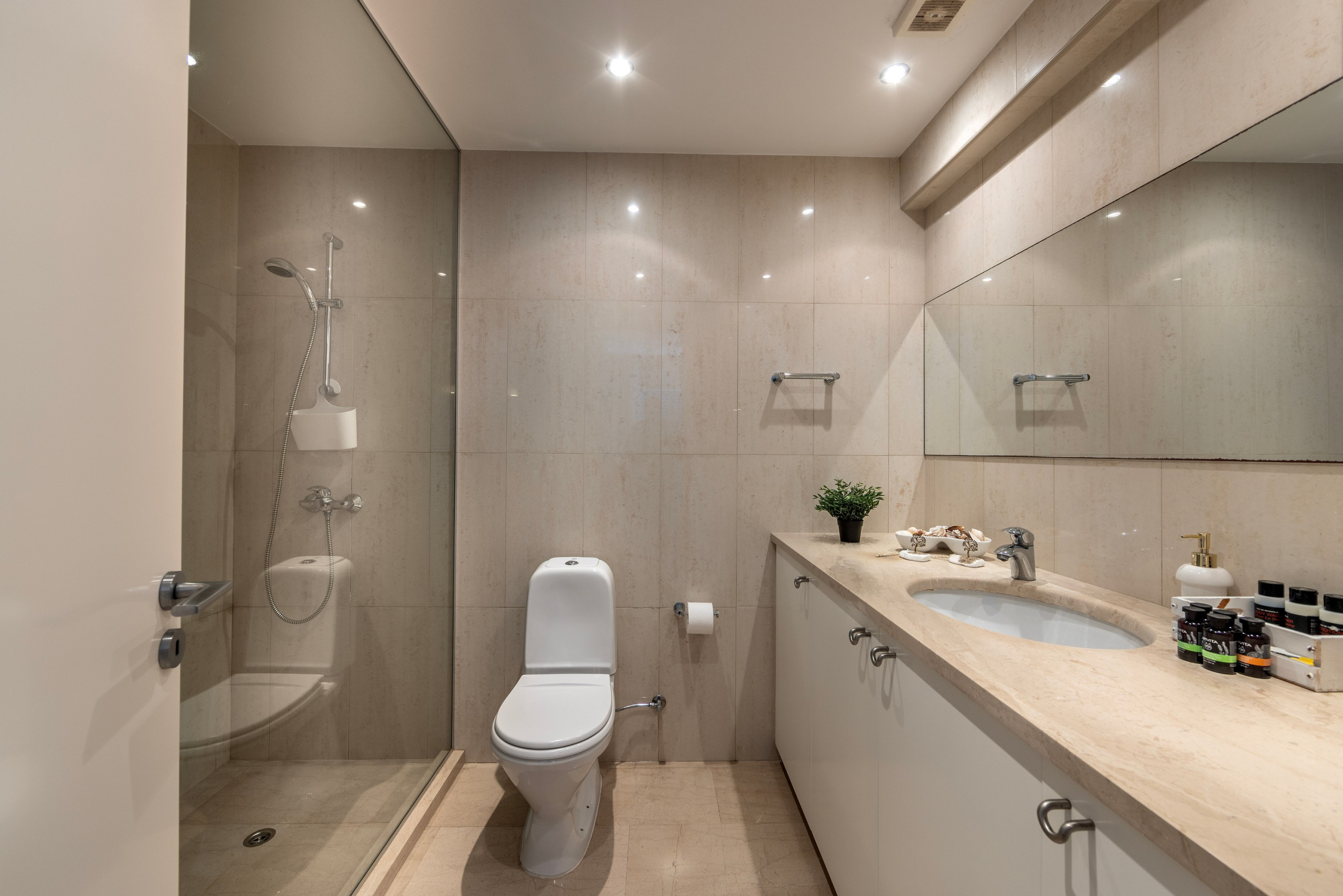 In the hotplate of glass ceramics open plan kitchen, refrigerator, microwave, oven, freezer, dishwasher, dishes/cutlery, kitchen utensils, coffee machine, toaster and kettle are provided.