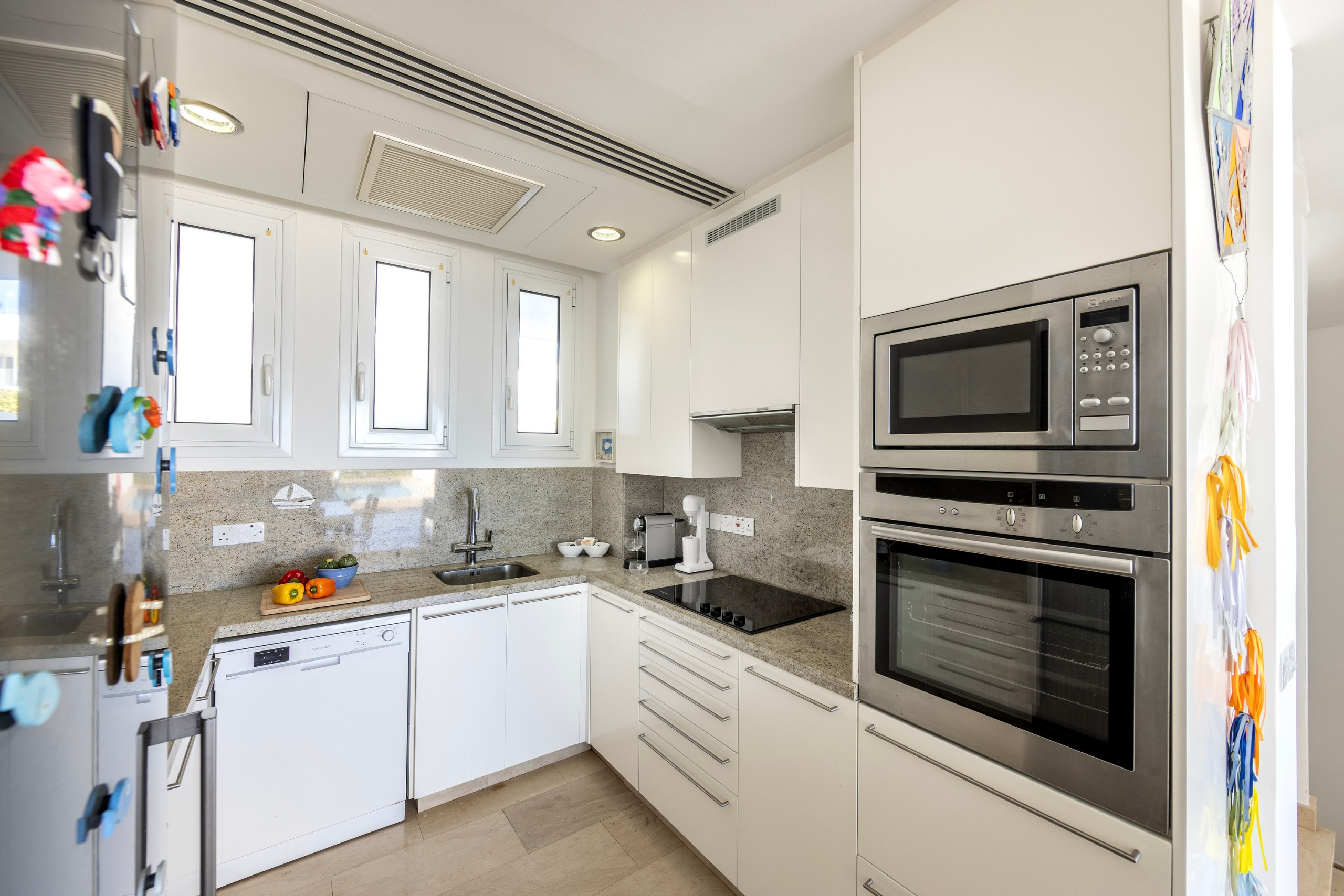 The accommodation is equipped with the following items: garden, garden furniture, fenced garden, washing machine, barbecue, iron, safe, internet (Wi-Fi), hair dryer, balcony, air conditioning throughout the house, private swimming pool, open-air parking the same building, 1 TV, satellite tv (Languages: English, Russian).In the electric open plan kitchen, refrigerator, microwave, oven, freezer, dishwasher, dishes/cutlery, kitchen utensils, coffee machine, toaster, kettle and juicer are provided.