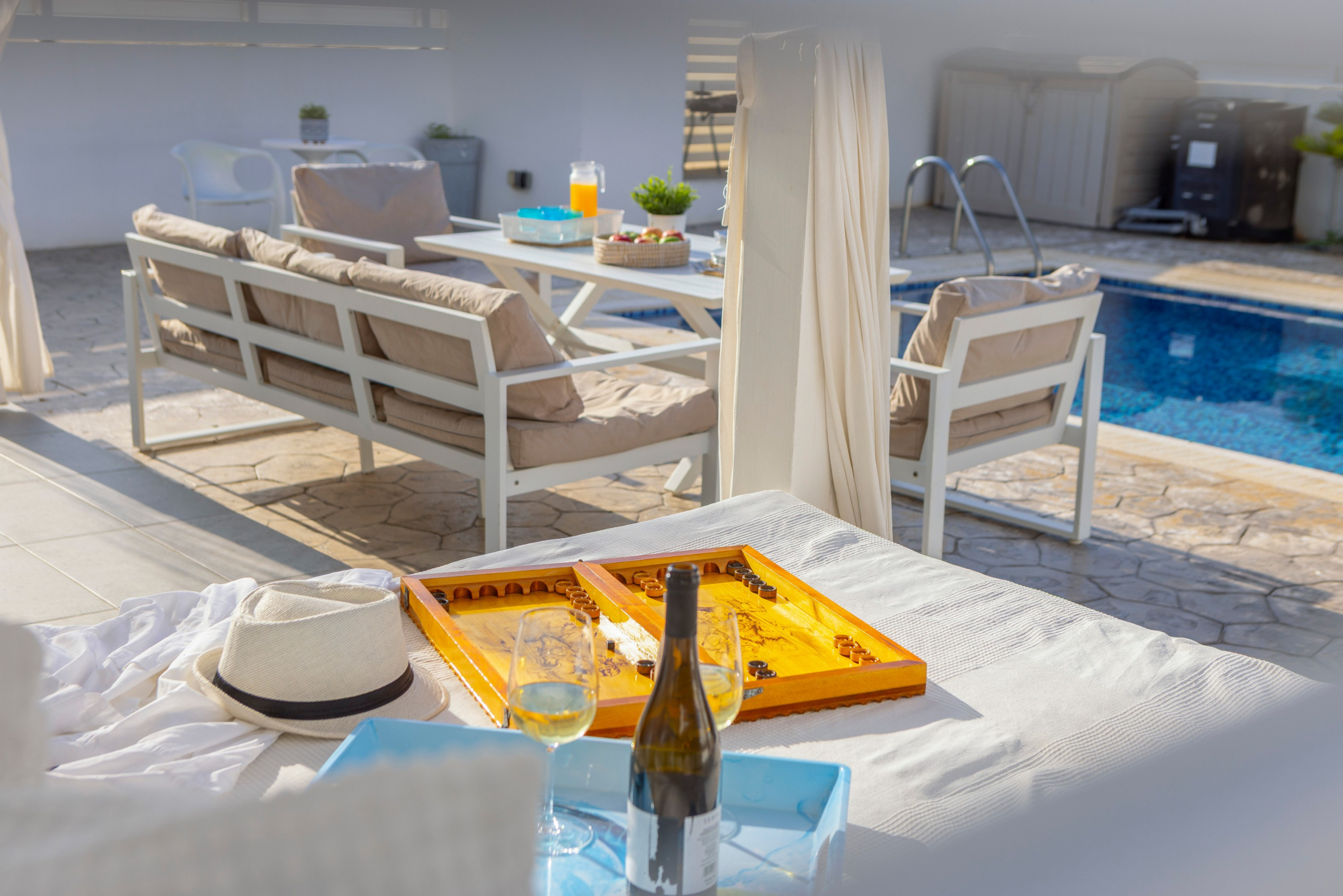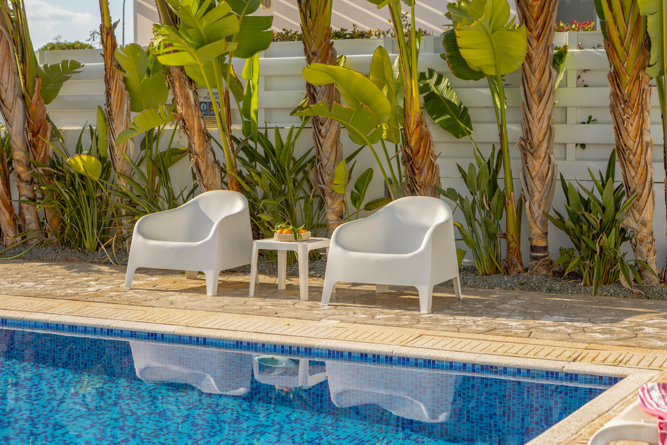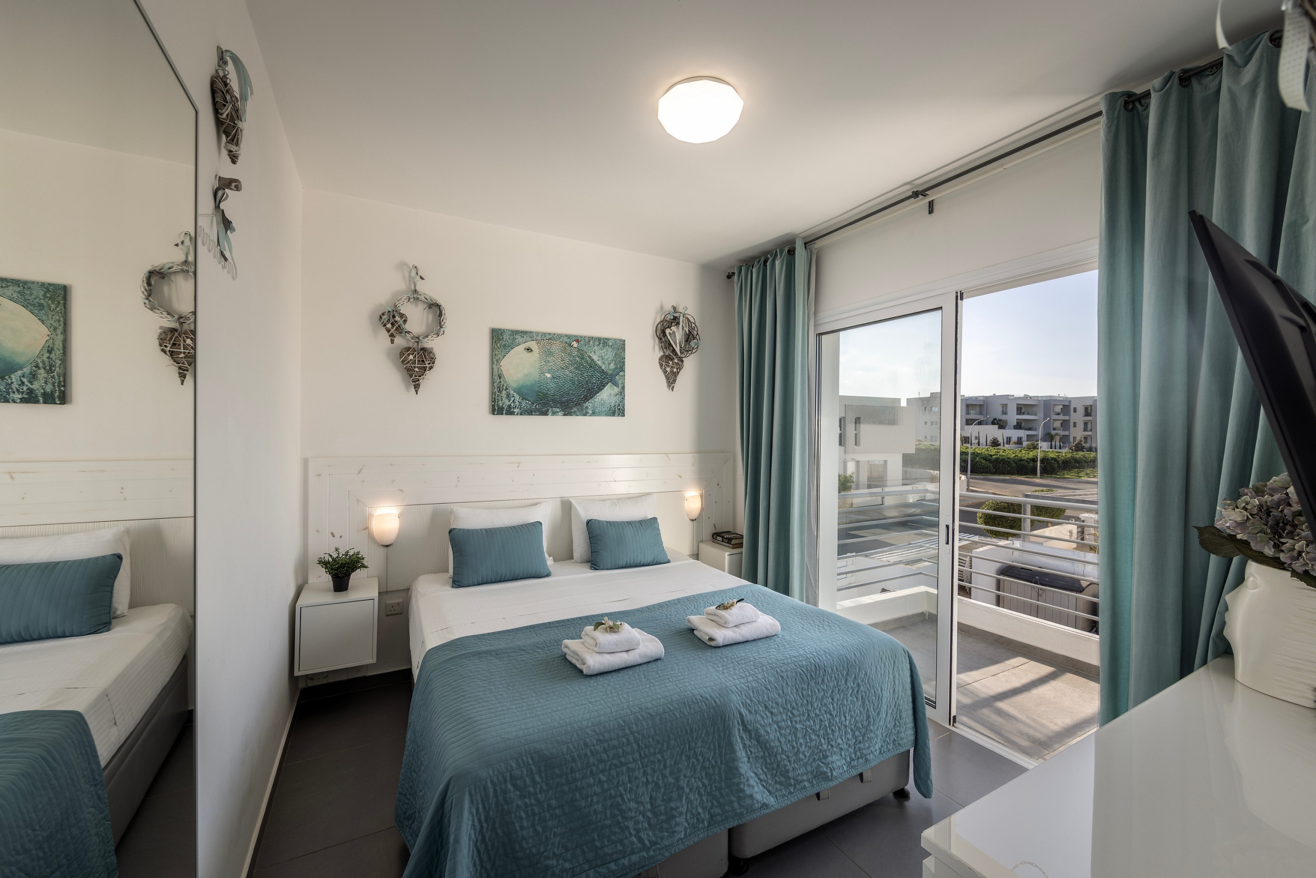 There is also a water park and aquarium that are worth a visit. The biggest water park in the Middle East can be found just outside of Ayia Napa which is only 10km away. Closer to the villa, less than three minutes’ drive away, is the more local town of Ayia Triada/Pernera, with its own 'strip of restaurants which are favored amongst the locals for their high quality. In this area you will find Golden Coast Fishing Harbor the romantic Sirina Bay or the child friendly Kalamies Beach.