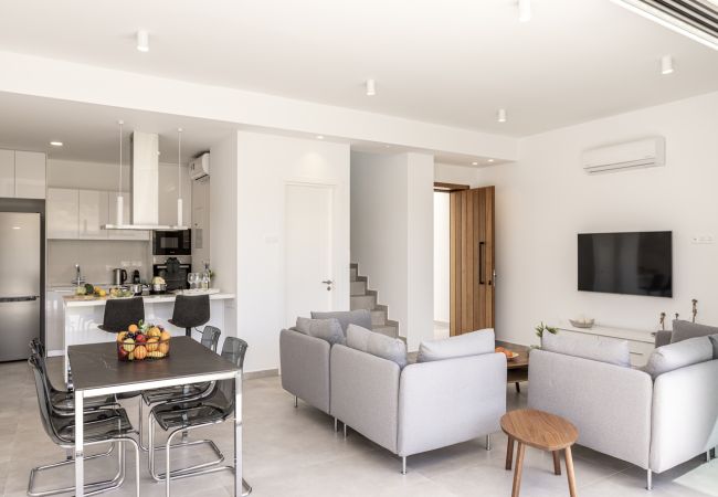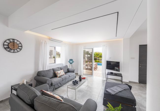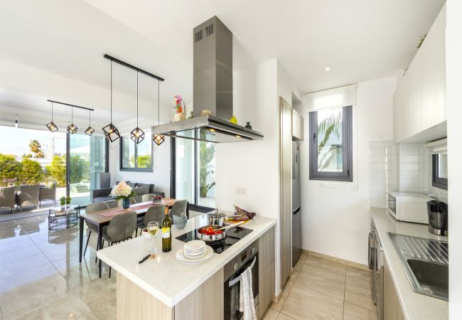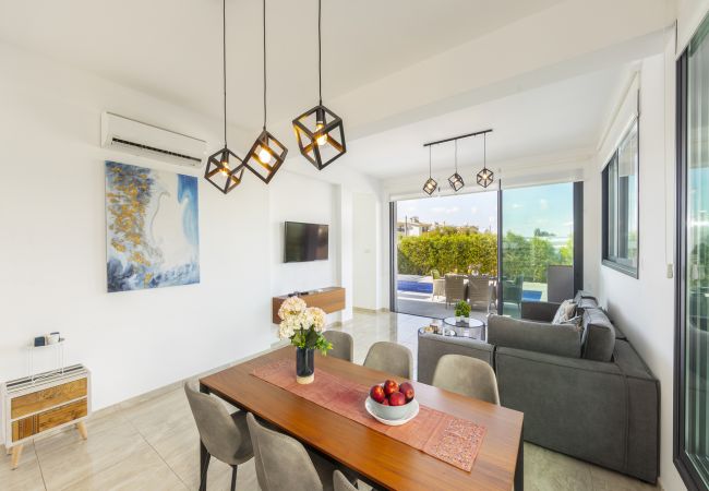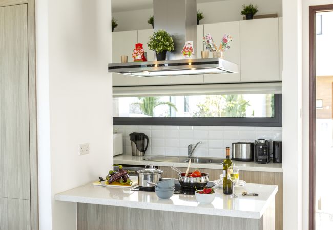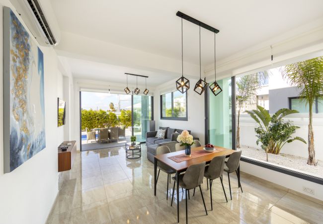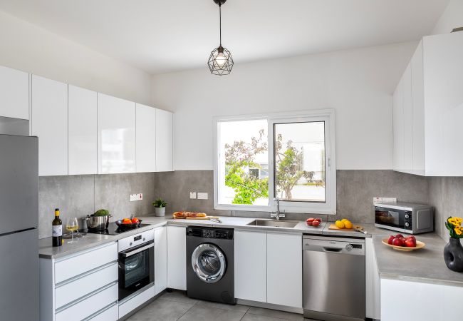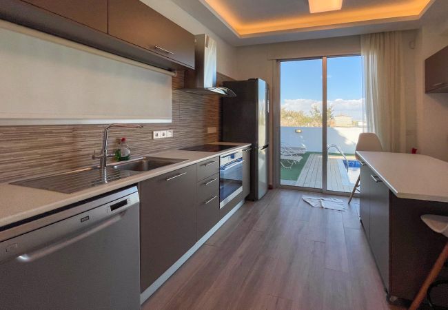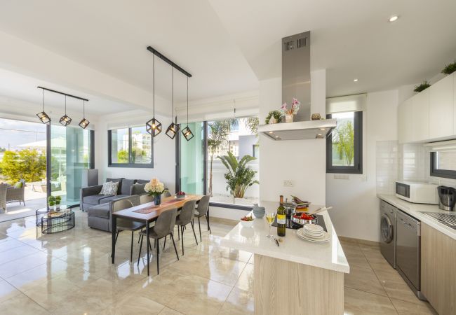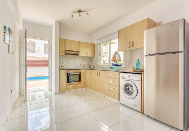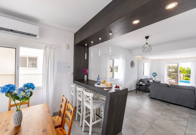 The villa in Protaras has 3 bedrooms. The villa is 130 m². The accommodation is equipped with the following items: private swimming pool, open-air parking.The open plan kitchen
