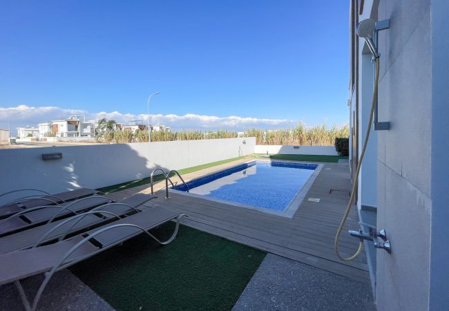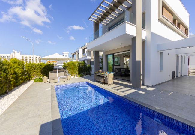 The villa in Protaras has 3 bedrooms. The villa is tastefully-furnished, is a new build, and is 131 m². It has views of the garden and the swimming pool. The property is located 600 m from...