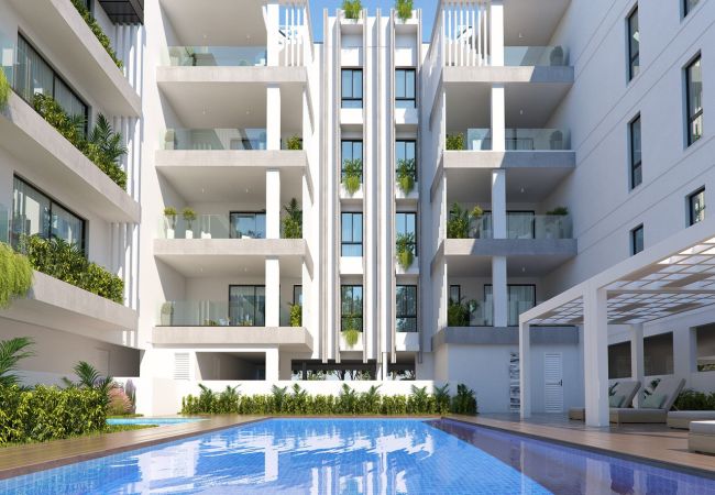 The apartment in Larnaca has 2 bedrooms. The apartment is 80 m². The accommodation is equipped with the following items: lift, air conditioning throughout the house, communal swimming pool,...