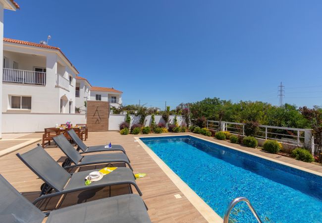The apartment in Protaras has 2 bedrooms. The apartment is 85 m². The accommodation is equipped with the following items: garden, air-conditioned, communal swimming pool, covered parking.The ...