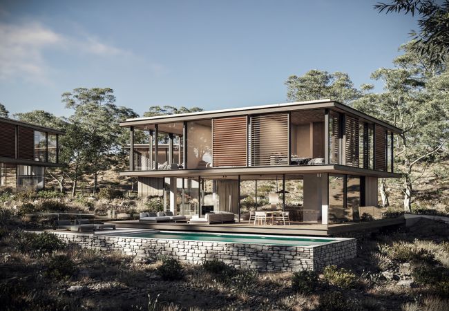 The villa is cozy, is a new build, and is 196 m². It has views of the mountain and the swimming pool. The property is located 0 m from the rock beach, 0 m from the supermarket, 0 m from the the...